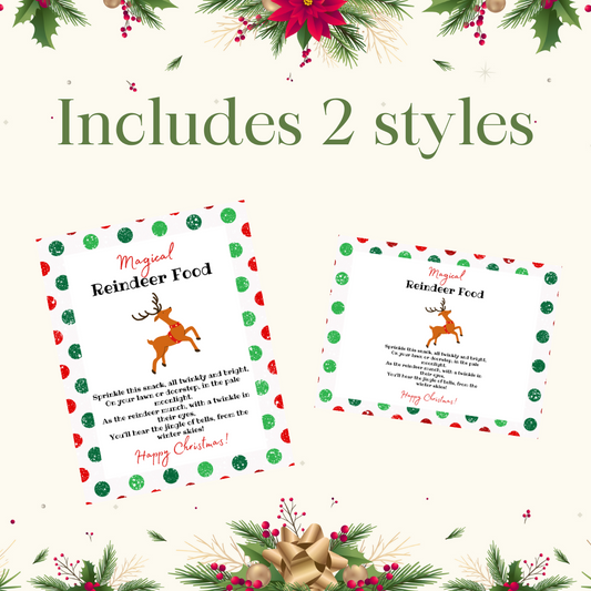 Magical Reindeer Food Tag Printable Instant Download PDF Green and Red Dots