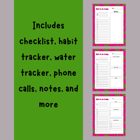 Shit to Do Today Pink & Green Weed Pattern Checklist/Tracker Pages