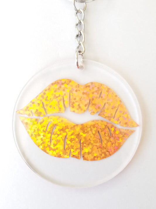 Gold Holographic Lips Keychain